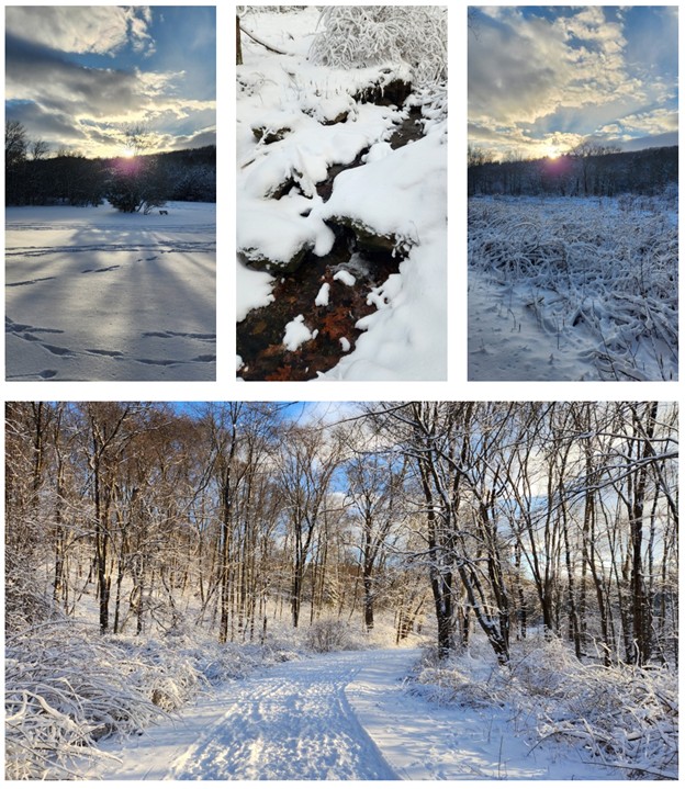 We had our first major snowfall of the year in CT this week, and I enjoyed a hike in the woods just before sunset.