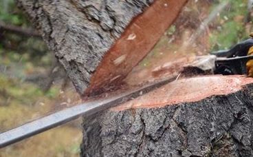 I approach and ask him how many trees he is cutting down.