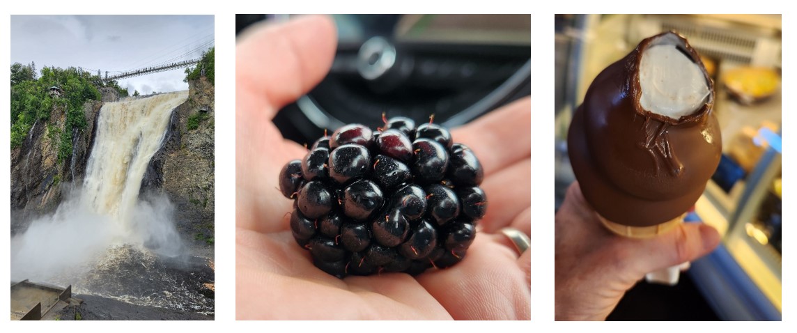 If you travel in Quebec, you might enjoy a hike to Montmorency Falls for spectacular views, followed by a drive to L’Ile de Orleans for golf-ball sized blackberries and ice cream at the local chocolatier. Swoon!