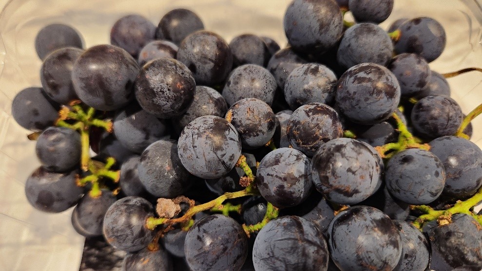 You pick a grape and squeeze it into your mouth until the pulp and juice empty from its skin. You let the clear, sweet juice trickle across your tongue and the pulp slide down your throat. Do not chew! If you bite down, very sour juice from inside the pulp will escape, and you will have to contend with two large, crunchy seeds.